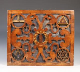 Vrijmetselarij, houten ceremoniële kist, 19e eeuw.