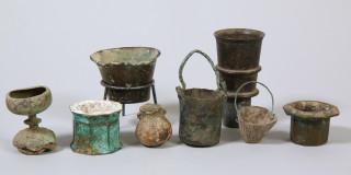 Collectie van tien antieke diverse bronzen en metalen potjes;
