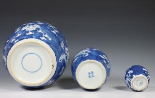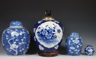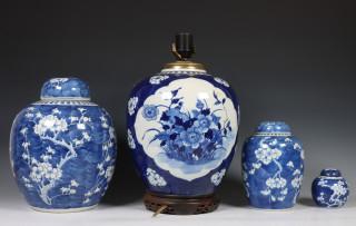China, vier blauw-wit porseleinen gemberpotten, 19e eeuw.