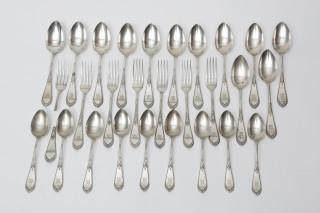 Duitsland, zes dinercouverts, zes diner- en zes dessertlepels, Jugendstil,