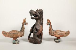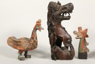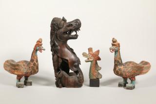 Indonesia, Bali, four carved mythological beings; one of coromandel wood,