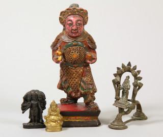 Vier Aziatische objecten,; India, koperlegering votieffiguur,
