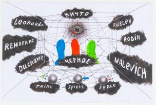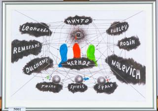 ballpoint en acryl op karton, gesigneerd op los blad, 1992, 20 x 30 cm.