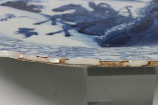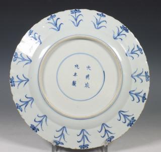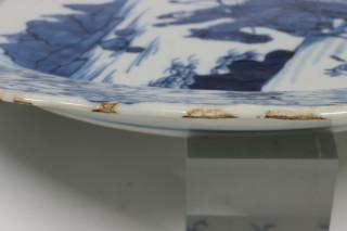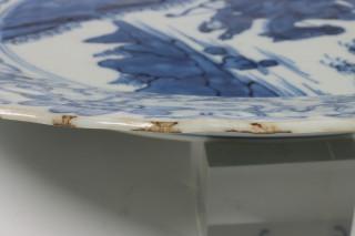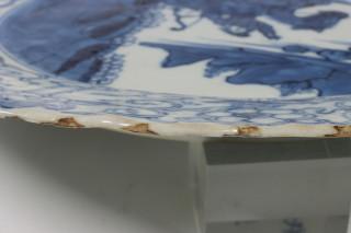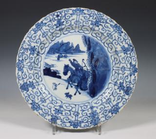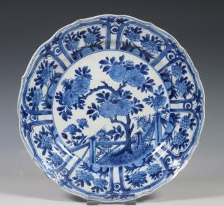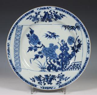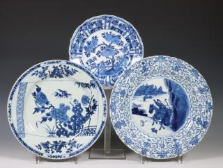 China, twee blauw-wit porseleinen borden, Kangxi en bord, Qianlong.