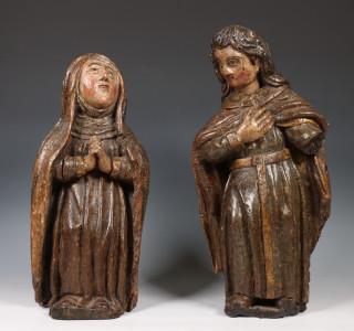Spanje, paar gestoken houten en polychroom sculpturen, 18e eeuw;