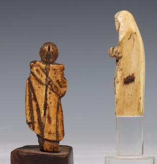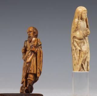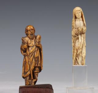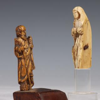 Twee gestoken ivoren heiligenbeeldjes, 17e/18e eeuw