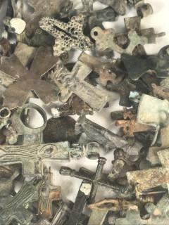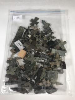 Diverse bronzen metalen kruishangers, deels antiek,