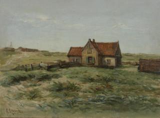 Huis in de duinen. Hierbij doek, gezicht op Deventer gesigneerd Monnickendam en doek, vrouw, door L. Anema.