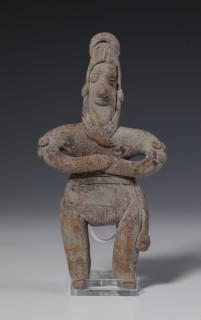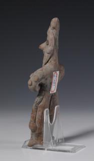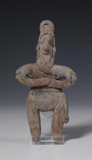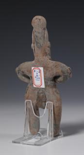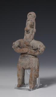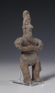 Colima, Mexico, a natural buff-brown standing figure depicted with long straited hairdo, West Coast and Classic Period Cultures, ca. 100-250 AD.