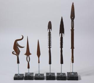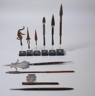 D.R. Congo, collection of six harpoon and spear tops, one axe and three lances.