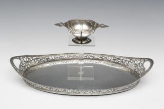 Ajour dienblad en brandewijn kommetje, 1e helft 20e eeuw,