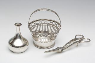 Ajour knottenmandje met hengsel, Art Deco, druivenschaar en vaasje,