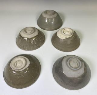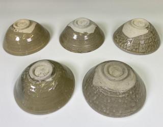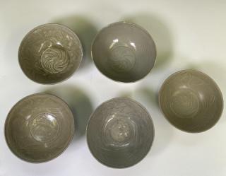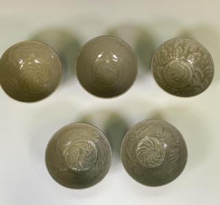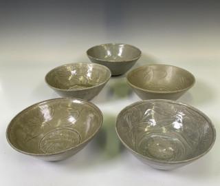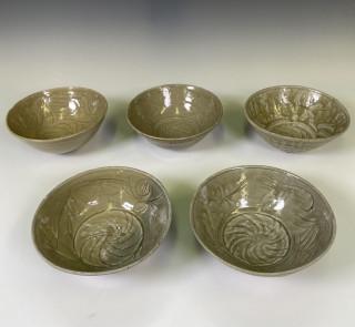 China, ten celadon porcelain bowls, Northern Sung dynasty, 10th-12th century, all with incised flowing floral decoration and covered with a greyish green glaze, from the Jepara wreck, Java Sea