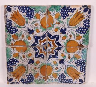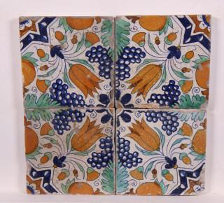 Vier polychroom ornament tegels, vroeg 17e eeuw;
