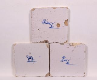 Vijfendertig blauw aardewerk tegels, circa 1700;