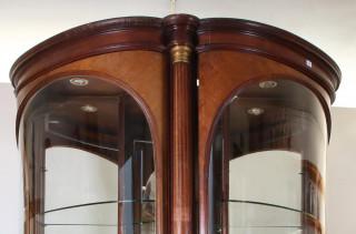 De vier deuren met gebold glas. Tussen de deuren kolommen met verguld bronzen beslag. Het interieur bestaand uit vier compartimenten met glazen schappen, ieder gescheiden door glazen wanden en spiegelachterwand. In de kap spots