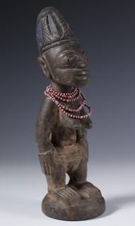 Nigeria, Yoruba, twin figure, ibeji, glass beaded necklace,