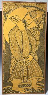 Man carying his burden. Gekocht direct van de kunstenaar zelf in Lagos.