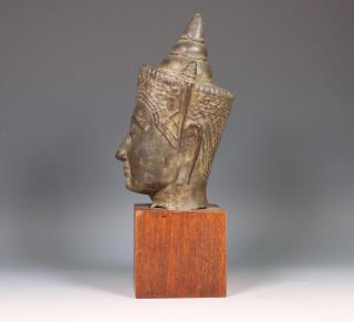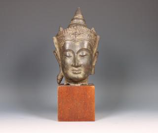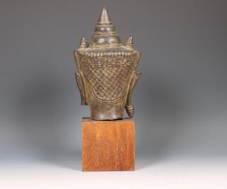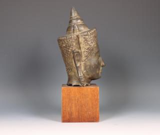Thailand, Ayutthaya-stijl bronzen Boeddha hoofd, 20e eeuw