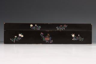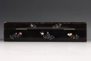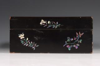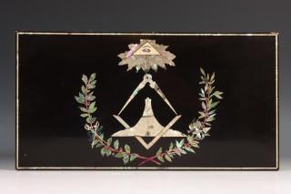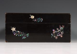 Japan, zwart lacqué brievenkist ingelegd met Vrijmetselarij symbolen, ca. 1860.