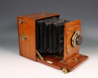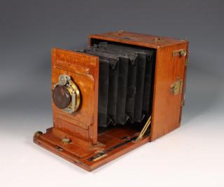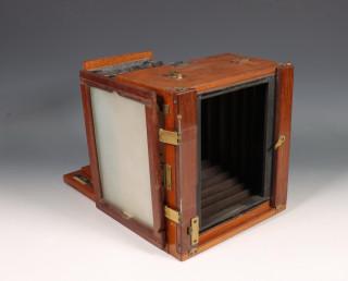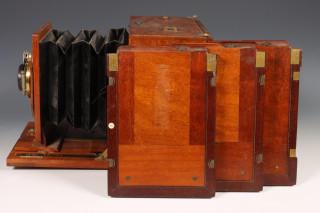 Mahoniehouten camera, Watson & Son, met drie platen, 19e eeuw.