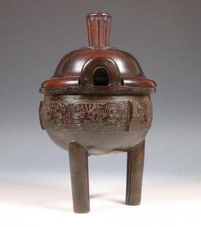China, bronzen archaïstisch wierookvat, 'ding', Qing-dynastie (1644-1912),
