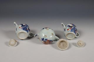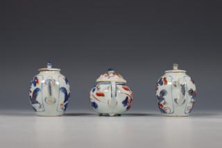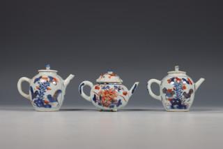 China, drie kleine Imari porseleinen theepotjes, 18e eeuw,