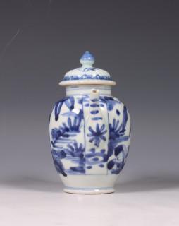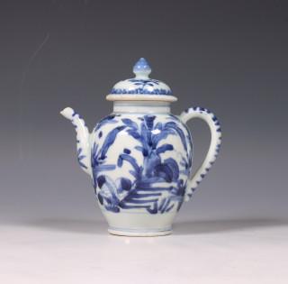 Japan, blauw-wit porseleinen theepotje, 18e eeuw,