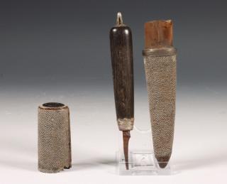 Pennemes met palissanderhouten greep in foedraal van roggenhuid, 18e eeuw.