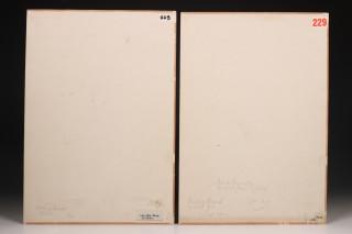 beide van rivierlandschap, beide met zegel, opgeplakt in map (lichte waterschade)