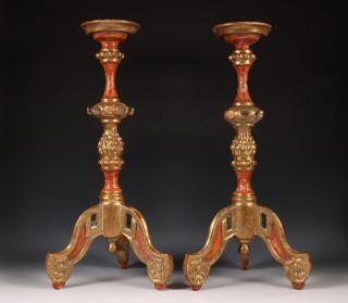 de stam met polychroom engelkopjes en ingelegd spiegelglas, op driesprant