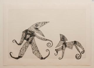 twee etsen, één niet ingelijst, 70 x 95 cm. en 60 x 75 cm.