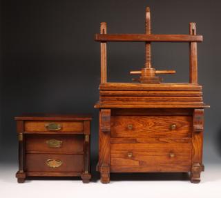 Miniatuur commode en miniatuur linnenpers, 19e eeuw