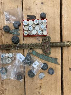 waaronder faience speelstenen, ijzeren en bronzen munten, waarbij antiek