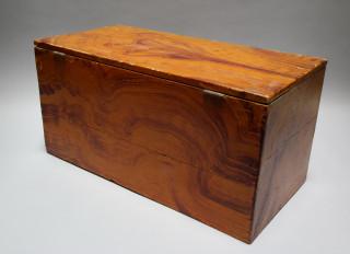 Marken, houten kist geschilderd in houtnerf naam, Grietje Springer