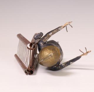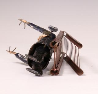Beschilderd blik, met opwindmechaniek. Ladder opklapbaar. (gebruikssporen).