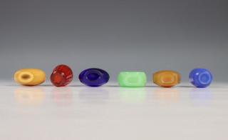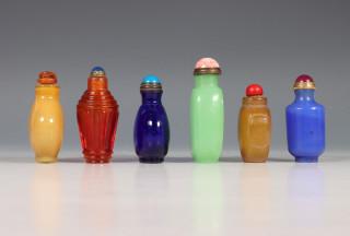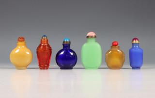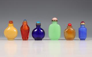 China, zes glazen snuifflesjes, 19e/20e eeuw,