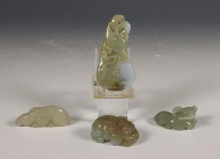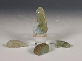 China, four celadon carvings, comprising a kylin, a hare, an ox and an Immortal. Condition: some surface wear.