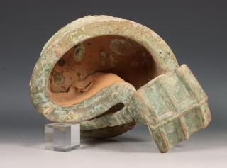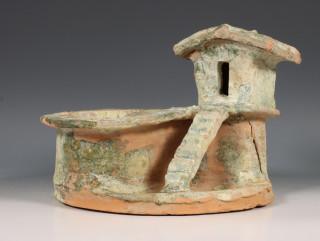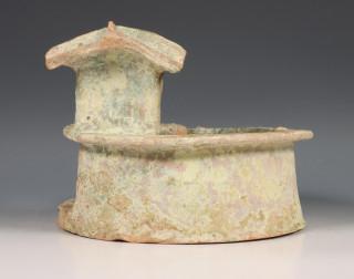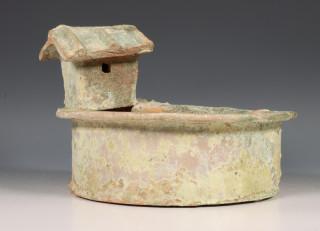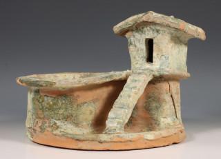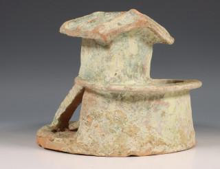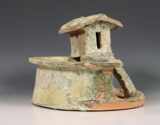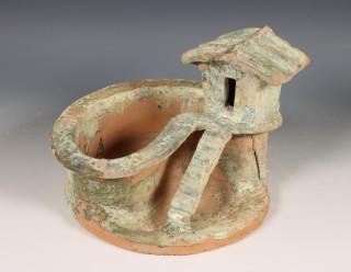 China, green-glazed model of a pigsty, probably Han dynasty (206 BC- 220 AD), realistically modelled as an enclosure with steps leading to a small barn, partially covered with an iridescent green glaze, with certificate of Art Treasures Gallery, Hong Kong, December 2002