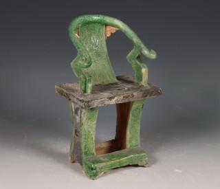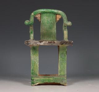 China, groot groen en paars geglazuurd aardewerken model van een stoel, Ming-dynastie (1368-1644),