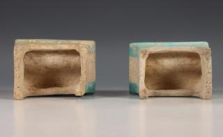 China, pair of turquoise glazed earthenware models of altar tables, Ming dynasty (1368-1644), both realistically modelled and covered with a turquoise glaze