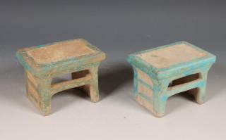 China, paar turquoise geglazuurde modellen van offertafels, Ming-dynastie (1368-1644),