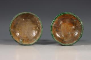 China, paar sancai geglazuurde aardewerken offerschalen, Ming-dynastie (1368-1644),