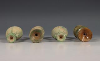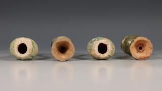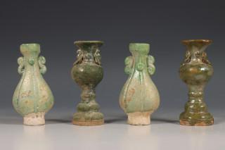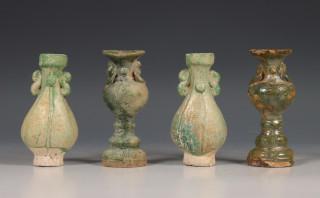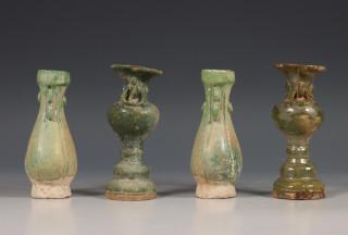 China, twee paar groengeglazuurde aardewerken vaasjes, Ming-dynastie (1368-1644),