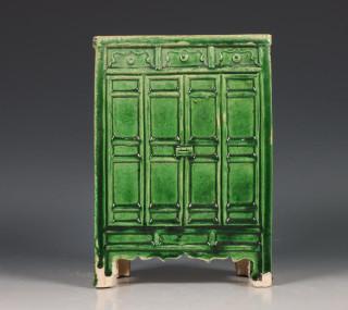 China, groengeglazuurde aardewerken model van een kast, Ming-dynastie (1368-1644),
