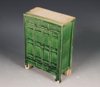 China, green-glazed earthenware model of a cabinet, Ming dynasty (1368-1644), realistically modelled with panelled doors, covered with a bright green glaze