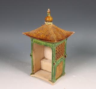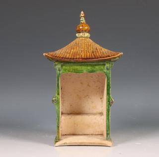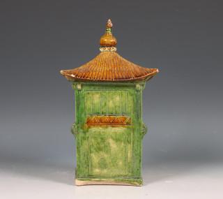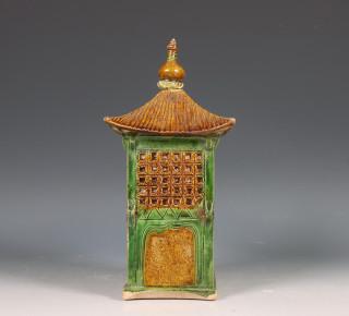 gemodelleerd met een pagodedak, bedekt met oker en groen glazuur