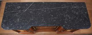 met grijs marmeren blad (besch.), twee laden en drie deuren. Het geheel versierd met verguld bronzen ornamenten