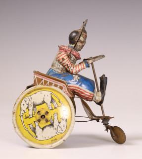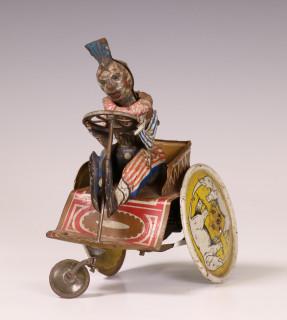 Duitsland, clown op driewieler, D.R.G.M. Tellus, ca. 1910.