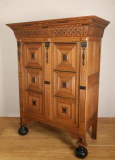 Eikenhouten Gelderse kussenkast, deels 18e eeuw.